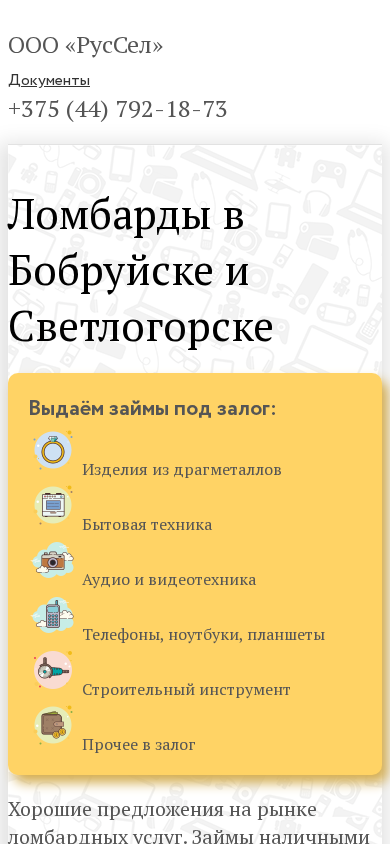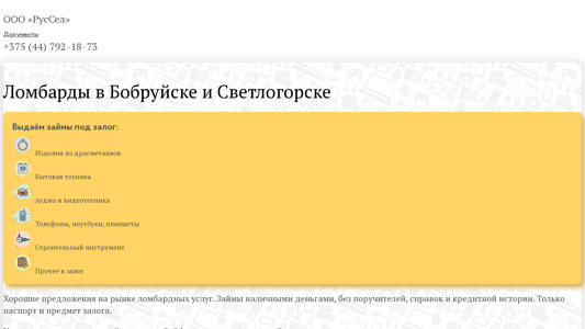 | Название / Заголовок | Ломбарды ООО «РусСел» |
