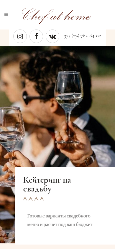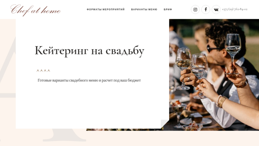 | SEO-описание | Свадебный кейтеринг в Минске от компании «Chefathome» – Креативность торжества!Красивая подача. Полная организация и проведение. |