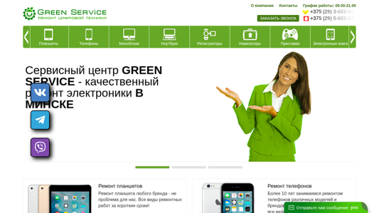 | AI-анализ | Проект веб-сервис "Зеленая служба" предлагает услуги по ремонту цифровых устройств в Минске, Беларусь. Компания занимается ремонтом смартфонов, планшетов, ноутбуков, моноблоков, электронных книг, телевизоров, навигаторов, магнитофонов и других электронных устройств. Ремонтный центр работает с 9:00 до 21:00, с расширенными часами с 10:00 до 19:00, за исключением выходных дней и некоторых праздничных дней. Ремонтный центр находится по адресу Ул. Закарова 24 в Минске. Дополнительные услуги включают обновление карт навигации для смартфонов, планшетов и устройств GPS, а также установку новых версий программного обеспечения. Компания предлагает ремонт различных брендов и моделей электронных устройств. |