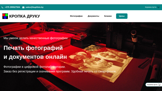 | AI-анализ | The website КРОПКА ДРУКУ (kupifoto.by) offers photo and document printing services online. With a focus on convenience, users can place orders without registration or downloading software, and even print from their smartphones. The website provides services for printing photos using a mini photo lab and digital printing for documents on A5, A4, and A3 formats. It also offers printing blank forms, laminating, binding, and cutting services. The site also features a photographer for creating school graduation albums and guarantees the quality of its products with delivery throughout Belarus. Payment options include Visa/MasterCard and the ERIP payment system with no additional commission fees. |