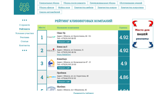 Название / ЗаголовокРейтинг клининговых компаний — лучшие клининговые компании в Беларуси AllRatings.by