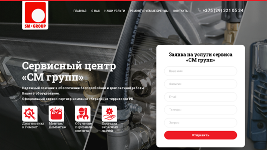 --- This online resource is the official service center website for SM group, offering a wide range of services for the repair and maintenance of various equipment brands. With over 25 years of experience in the industry and five regional offices, SM group specializes in providing high-quality and professional services for a broad spectrum of clients. The team consists of engineers who undergo specialized training from certified manufacturers, ensuring a high level of expertise and the ability to repair even the most complex issues. The service center is equipped with the necessary diagnostic tools and maintains a stock of spare parts, allowing for efficient and timely repairs. Key benefits of using SM group's service center include quick response times, operational repair schedules, high-quality repairs from an official dealer, a large selection of available spare parts, and free diagnostics. The website provides information on the company's history, services, supported brands, and contact details.
