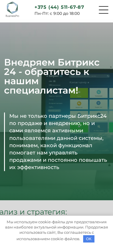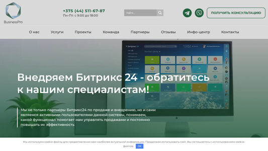 | AI-анализ | The portal BusinessPro.by is a business consulting firm based in Minsk, Belarus. The website offers marketing, promotion, and advertising services for businesses. They aim to create successful development strategies for companies. The top keywords on the site include 'business', 'consulting', 'marketing', 'strategy', and 'development'. The site also mentions expertise in Bitrix24, a business management software. The site includes sections for 'About Us', 'Services', 'Projects', 'Team', 'Partners', 'Reviews', 'Info-centre', and 'Contacts'. The site also offers implementation of Bitrix24 and is a partner of the software. The homepage features a phone number for contact and business hours. The site also includes a search function and a menu with links to various sections. The site offers a sales audit service to evaluate the effectiveness and competitiveness of a |