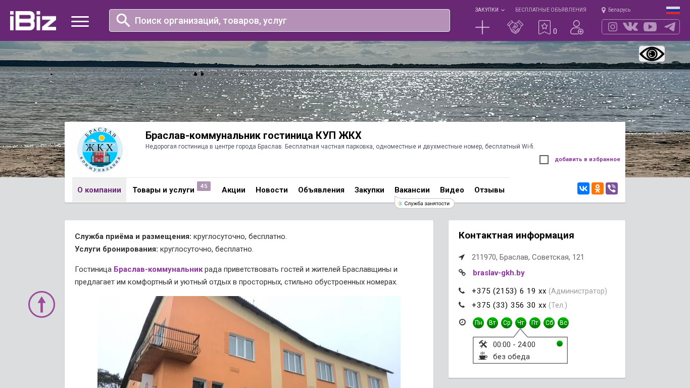 Название / ЗаголовокБраслав-коммунальник гостиница КУП ЖКХ - Недорогая гостиница в центре города Браслав. Бесплатная частная парковка, одноместные и двухместные номер, бесплатный Wi-fi.. 211970, Браслав, , Советская, 121
