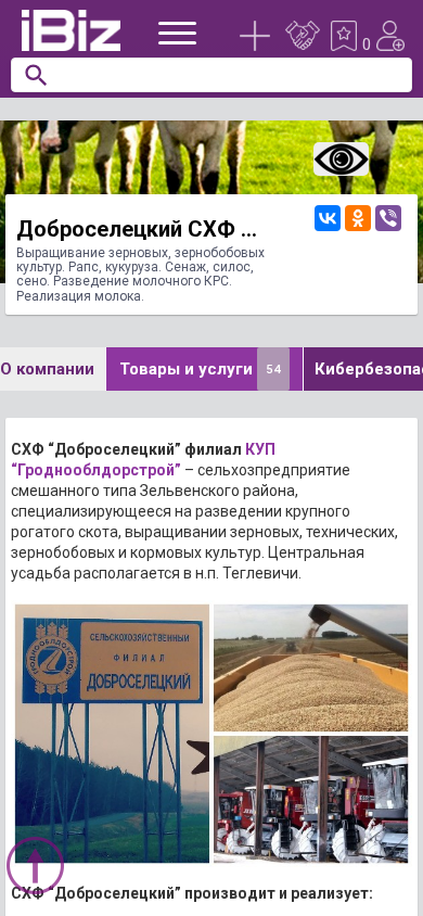 | AI-анализ | <!--- end fragment ---> The website is for Dobroseltsky Agricultural Farm Filial of KUP Grodnooblgorstroy, which specializes in livestock farming and crop production. The farm produces and sells dairy products, beef, cattle, hay, silage, corn, corn silage, sunflower, and grain. The central farm is located in the settlement Teglevichi. The organization offers transportation services and provides feed production for livestock. The farming activities include both crop production for commercial grains and feed production for livestock. The website provides information on the company, its products and services, and contact details. Keywords: agriculture, livestock farming, dairy products, beef, cattle, transportation, feed production, crop production, grains, silage, sunflower. |
