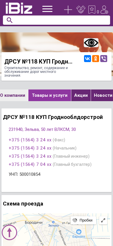 | Название / Заголовок | ДРСУ №118 КУП Гроднооблдорстрой - Строительство, ремонт, содержание и обслуживание дорог местного значения.. 231940, Зельва, , 50 лет ВЛКСМ, 30 |