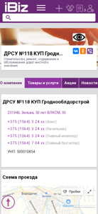 | AI-анализ | language: ru This online resource is dedicated to DRSU №118 KUP Grodnooblodorstroy, a company specializing in the construction, repair, maintenance, and servicing of local roads in Zhelva, Belarus. The website provides contact information, including phone numbers and an address. It also features information about the company's products and services, as well as news, announcements, vacancies, and customer reviews. The domain is registered under the .by top-level domain and is currently ranked 500010854 in Alexa. The most frequently used keywords on the site include "375," "услуги," "1564," "закупки," "объявления," "техника," "без," and "обеда." The company's contact information includes phone numbers for the director, chief |