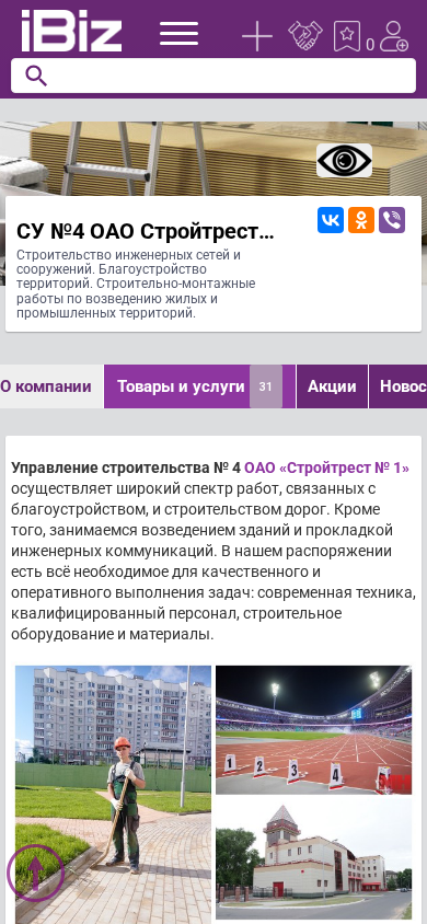 The web project "SU №4 OAO Stryostrest №1" offers a wide range of services related to civil engineering, construction and road building. The company specializes in the construction of engineering networks and structures, the improvement of territories, and the execution of construction and installation works for the development of residential and industrial areas. The company has access to modern technology, a qualified workforce, construction equipment, and materials to ensure high-quality and timely completion of projects. Services include construction and installation works for residential and industrial buildings, the construction of engineering networks and structures, and the improvement of territories. Some of the company's projects for landscaping and reconstruction include parks named after Chelyuskinets, Gorky, and a country estate-park complex in Loshitsy, as well as the architectural-sculptural monument "Belarus Partisan." The company guarantees competitive prices and individual
