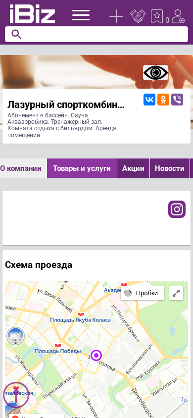 | AI-анализ | The website is for a sports complex called "Lazurny Sportkombinat OAO Stroytrest #1", offering various services including an aqua aerobics pool, sauna, fitness center, billiards room, and room rentals. The company is located in Minsk, Belarus, at the address Козлова, 17-2. Contact information for the reception, HR department, accounting, and administration can be found on the website, along with opening hours and days off. The website also includes a map for directions, as well as sections for company news, vacancies, and customer reviews on social media platforms. |