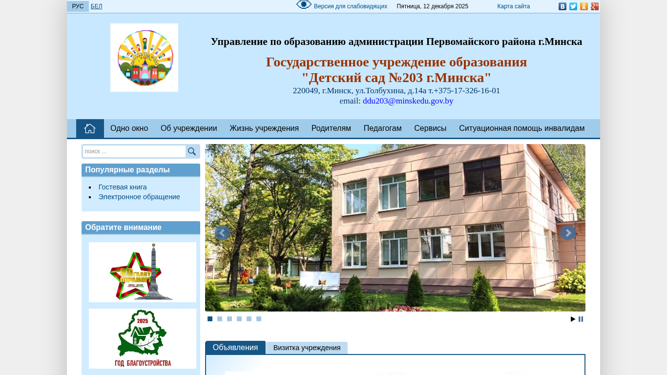 | Название / Заголовок | Детский сад №203 г.Минска |