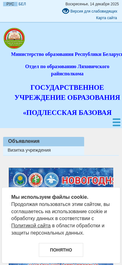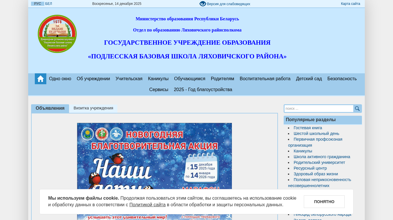| Название / Заголовок | Подлесская базовая школа Ляховичского района |