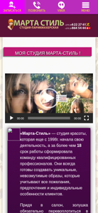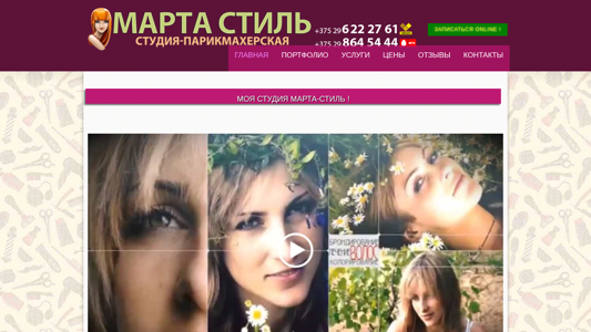 | AI-анализ | The portal "Marta Style" is a hair salon located in Minsk, Belarus, at ul. Kiрова 19. The salon offers various hairdressing services including modern men's and women's haircuts and hair care at affordable prices. There are also discounts and online appointment booking available. The website features a portfolio of men's and women's haircuts, information on services such as hair coloring, and pricing for women and men. The salon, which has been in operation since 1998, boasts a team of qualified professionals who create unique and unruffled looks tailored to each client's preferences and individual features. Clients can expect to leave feeling like a transformed princess due to the high efficiency and creative approach of the salon's staff. The studio's primary goal is to create beauty, youth, and vitality for |