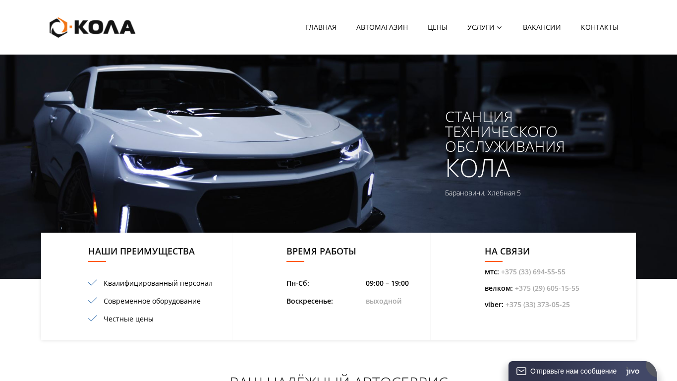 | Название / Заголовок | Фирменная станция технического обслуживания - в Барановичах | СТО "КОЛА" |