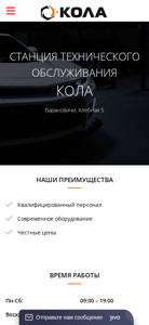 | AI-анализ | The portal auto-kola.by is a car service and technical maintenance station located in Baranovichy, Belarus. The station offers various repair services including suspension, fuel injectors, engine repair, car conditioning, and tire changing. The station also has a bodywork shop and a computer diagnostics center. Customers can contact the station at the numbers +375 (33) 694-55-55 or +375 (29) 605-15-55, or through Viber at +375 (33) 373-05-25. The station is open Monday to Saturday from 9:00 to 19:00 on weekdays and closed on Sundays. The station prides itself on its certified personnel, modern equipment, and fair pricing. It is one of the leading auto |