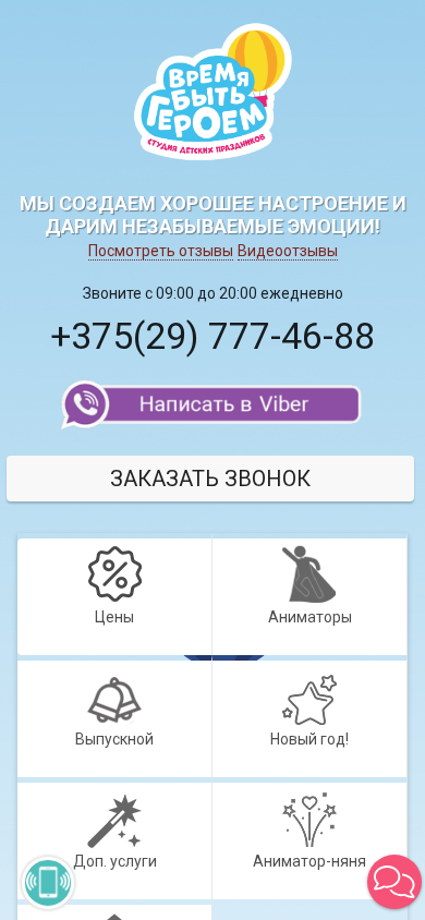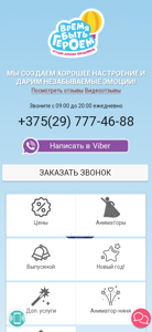 | SEO-описание | Услуги аниматоров в Минске и области. Праздничное агентство «Время быть героем» — мы знаем как сделать идеальный праздник для ребенка и родителей! |