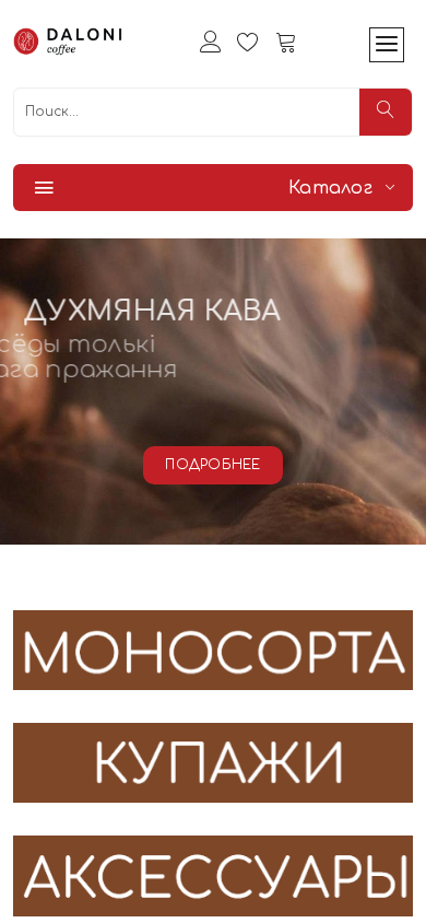 | AI-анализ | --- This online resource, titled "Главная | Daloni Coffee," is an e-commerce website dedicated to selling roasted coffee beans from over 50 worldwide plantations. The website's mission is to transmit emotions and meanings through coffee. The site offers various types of coffee, including specialty coffee since 2002, monosorta from Asia and Oceania, Africa, and South and Central America, as well as decaf and accessory sets. Daloni Coffee provides delivery and subscription services, and their contact information is available at +375 (29) 628-23-67 and everyday.coffee.by@gmail.com. The website features coffee recommendations, limited edition collections, and individual coffee offerings, such as the "ДУХМЯНАЯ КАВА" and "Колумбия Juicy Straw |