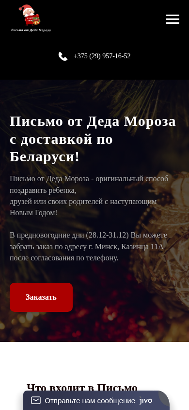 | SEO-описание | Закажите письмо от Деда Мороза ребенку ✉️ и получите в подарок набор стикеров.✔️ Бесплатная доставка белпочтой. Порадуйте своих детей и близких! |