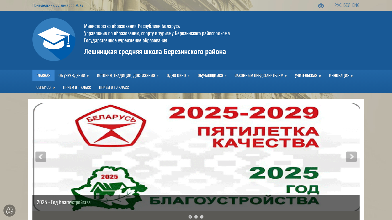 | Название / Заголовок | Лешницкая средняя школа Березинского района |