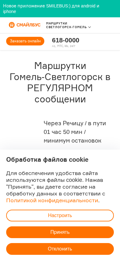 | Название / Заголовок | Заказать маршрутное такси ✪ Светлогорск ➤ Гомель ➤ Светлогорск по М1✪. АКЦИЯ! Проезд от 19 BYN. Звоните ☎ мтс, вел, лайф 618-0000 ✔ бесплатный WI-Fi, ✔ фильмы в дороге, ✔ онлайн-заказ мест. | Смайлбус |