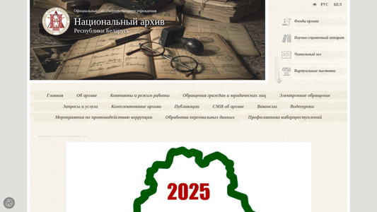 | AI-анализ | This website is the official site for the National Archive of the Republic of Belarus. It provides access to various services related to the archive, including requests for documents, virtual exhibitions, and contact information. The keywords associated with this site include 'archive', 'Belarus', 'Republic', and 'National'. The site offers sections on the history of the archive, its structure, and public organizations. It also includes information on administrative procedures, paid services, and genealogy research. Users can make requests for participation in partisan and underground movements in Belarus, as well as requests for information on occupied territories, education, wages, and repressions. The archive also offers publications, vacancies, video tutorials, and events to counter corruption. The site handles personal data and prevents cybercrime. It also features a database of 'Belarusian Villages, Burned in the Great Patriotic War'. |