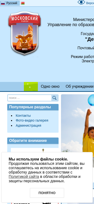 | AI-анализ | --- The portal "Детский сад №105 г.Минска" (Minsk Kindergarten No.105) provides information about the kindergarten located in Minsk, Belarus. The website includes sections on the institution's administration, services, popular topics, and contacts. Keywords associated with the website include "education," "2025," "children," "news," and "Minsk." The website is operated by the Ministry of Education of the Republic of Belarus and the Administration of Moscow District of Minsk. Users can find contact information such as a postal address, phone number, and email address. The kindergarten's operating hours are listed as Monday through Friday from 7:00 AM to 7:00 PM, and Saturday and Sunday as holidays. The website also includes a section for parents and pedagogues |