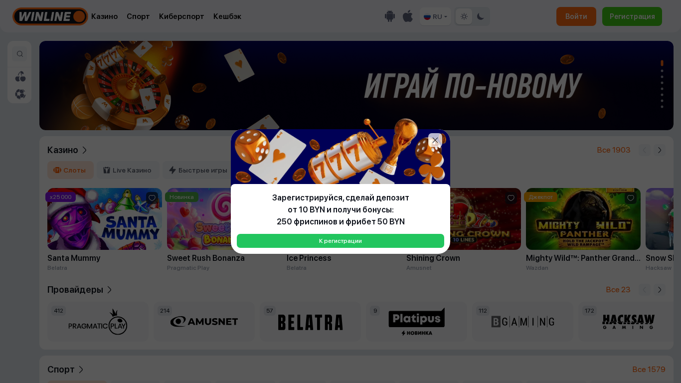 | SEO-описание | Официальный сайт легальной букмекерской компании Winline в Беларуси. Онлайн ставки на спорт Фрибет при регистрации ⚡ программа лояльности с кэшбеком со ставок. |