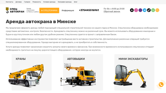 | SEO-описание | Услуга по аренде автокрана в Минске и области. Свой автопарк автомобильных кранов. Опытные машинисты. Гибкие цены и скидки. |