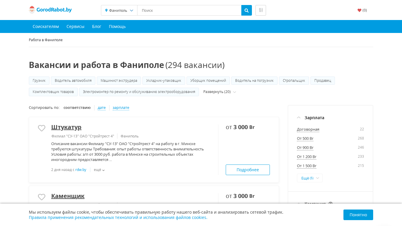 | Название / Заголовок | Вакансии и работа в Фаниполе | Поиск работы с ГородРабот.бай |
