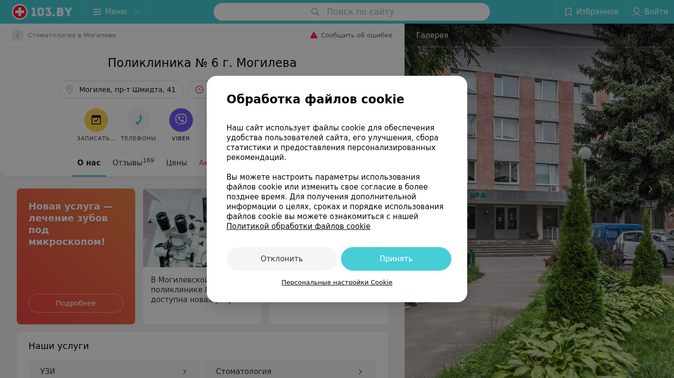 | SEO-описание | Поликлиника № 6 г. Могилева Могилев пр-т Шмидта 41 – телефоны, время работы, отзывы и схема проезда в каталоге медицинского портала 103.by. |