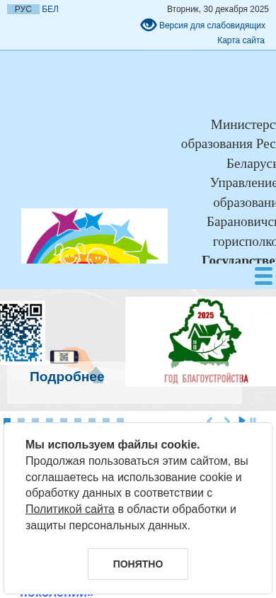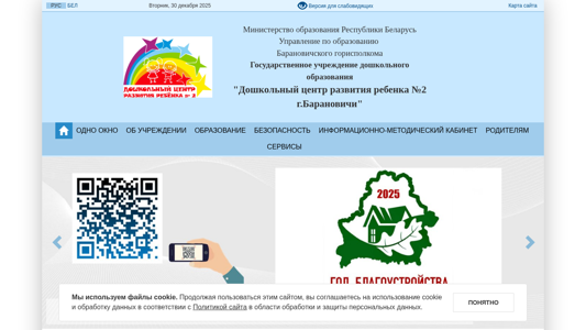 | AI-анализ | This website belongs to the state educational institution "Doškol'nyj centr rozvytki rebenka №2" (Children Development Center №2) located in Baranavichy, Belarus. The title of the website is "Дошкольный центр развития ребенка №2" (The Children Development Center №2). The description of the website mentions that it provides advice on various topics related to education and childcare. The top keywords include words related to education, group, saita (website), data, map, Baranavichy, dtsrr (Children Development Center), and advice. The website also appears to have a section for news and contacts. The website is operated by the Ministry of Education of the Republic of Belarus and the Baranavichy city executive committee. The website is accessible only with a single window and has information on the |