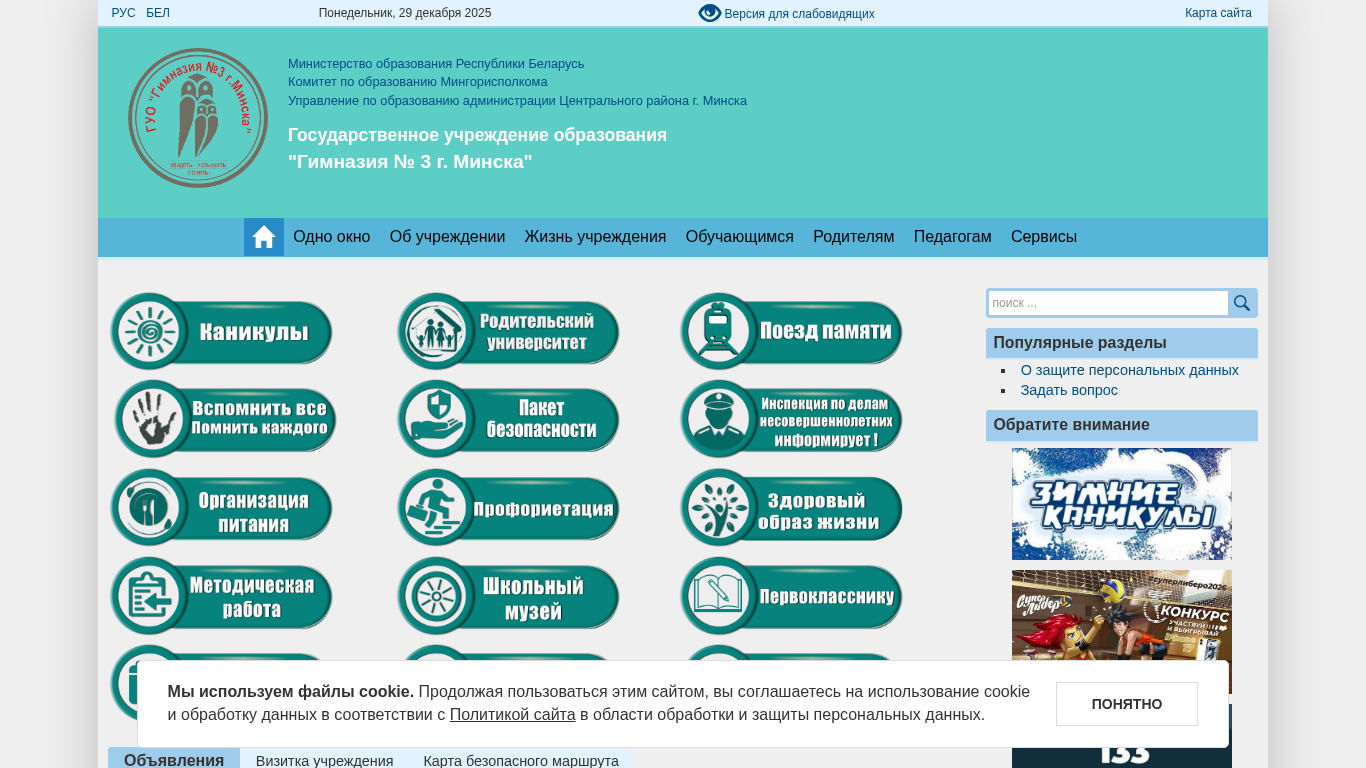 | Название / Заголовок | Гимназия № 3 г. Минска |