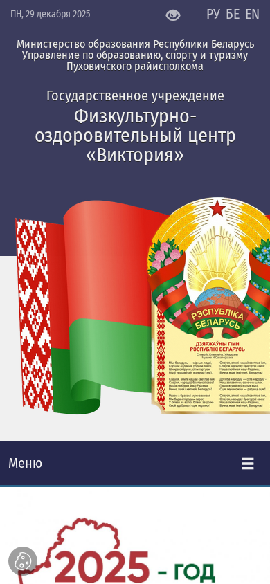 | AI-анализ | The website is the official homepage for the "Victoria" Recreational and Health Center located in the Puhoвичsky District of Belarus. The title of the page is written in Belarusian language, which translates to "Physical Culture and Health Center 'Victoria' of Puhoвичsky District". The description of the website mentions contacts, electronic applications, and schedules for the center's services. The top words associated with the website include "2025", "details", "Belarus", "district", "Victoria", "contacts", "electronic", "applications", "recreational", "health", "center", "schedule", "Puhoвичsky", and "region". The domain name is "victoria.pukhovichi-asveta.gov.by". |