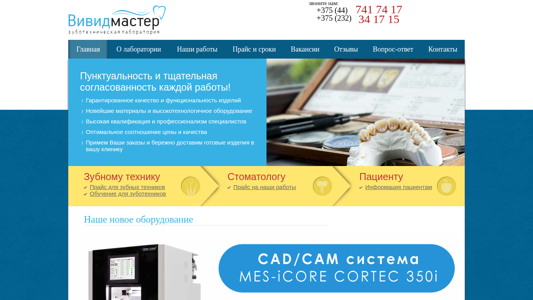 Сайт "Вивидмастер.by" посвящен дентальной лаборатории, специализирующейся на производстве зубных имплантатов, коронок и других видов стоматологических восстановлений с использованием последних материалов и технологий. Лаборатория, расположенная в Гомеле, Беларусь, employs высококвалифицированные специалисты, которые постоянно совершенствуют свои навыки через семинары, курсы и международные конференции. Сайт предоставляет информацию о предлагаемых услугах, включая стоимость, доставку и отзывы клиентов. Также на сайте есть блог с новостями и мероприятиями, связанными с стоматологией и компанией. Название сайта "Вивидмастер", а его описание содержит ключевые слова, связанные с стоматологической технологией, материалами и услугами. На сайте наиболее часто встречаются слова "цена", "стоматология", "лаборатория" и "зубоврачество".