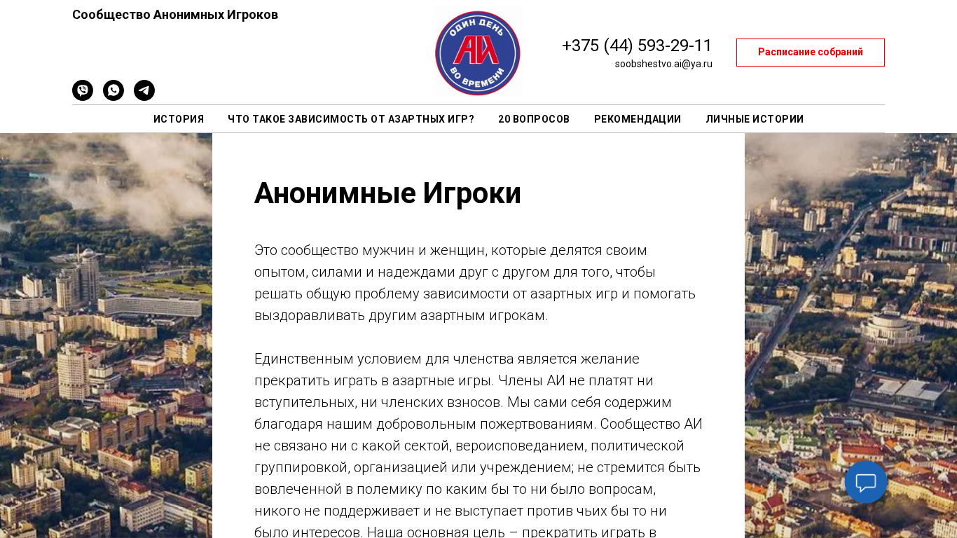 | SEO-описание | Сообщество Анонимных Игроманов Республики Беларусь. Расписание групп в Минске . Телефон горячей линии. |