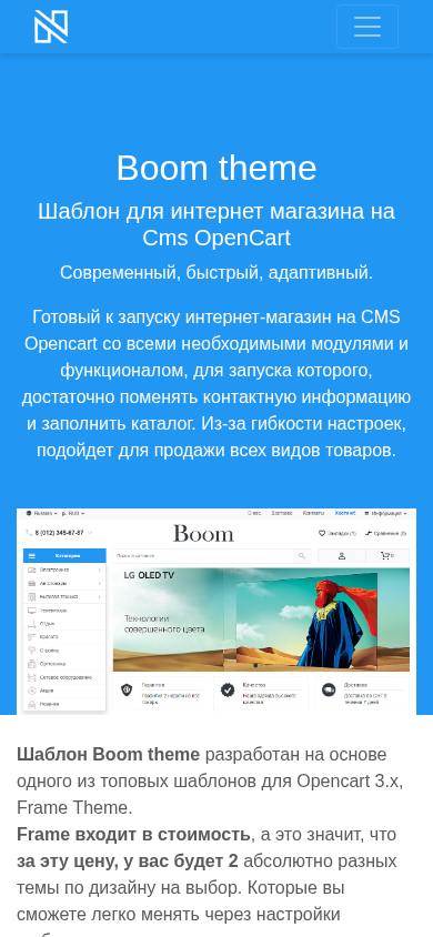Проект веб-сайта "Boom theme" представляет собой шаблон для онлайн-магазина на платформе Cms Opencart, предлагающий 50% скидку. Это современный, быстрый и адаптивный дизайн, требующий только замены контактной информации и заполнения каталога для запуска интернет-магазина. Шаблон универсальный, подходит для продажи любых видов товаров благодаря своей гибкости настроек. Разработан с использованием Frame Theme, одного из лучших шаблонов Opencart 3.x, этот тема предлагает два уникальных дизайна для выбора. Оба варианта могут быть легко изменены через настройки шаблона. В теме реализованы отличные функции, продуманная пользовательская интерфейс, чистый код и быстрое загрузка, что является ключевыми требованиями для успешных продаж в онлайн-магазине. Шаблон основан на фреймворке Bootstrap 4 и включает в себя обширный набор дополнительных модулей, настроек и программного обеспечения, необходимых для полной функциональности современного интернет-магазина. Цель состоит в том, чтобы сделать ваш интернет-магазин максимально удобным и привлекательным для пользователей.