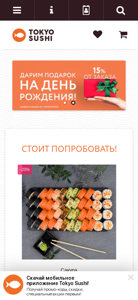 Сайт проекта Tokyo-Sushi.by предназначен для доставки суши в Минске, Беларусь. Сайт предлагает доставку суши домой и в офисы, а также возможность самовывоза. Компания использует только свежие продукты и традиционные рецепты для приготовления суши. Доставка бесплатная. Выбор продуктов элегантный. На сайте представлены меню, раздел информации, функция поиска и контактные данные. Бизнес работает с 11:00 до 22:30, включая центр обслуживания клиентов, регистрацию и функции авторизации. Категории на сайте включают в себя роллы, горячие роллы, наборы, запеченные роллы, быстрые роллы, nigiri, gunkan, супы, салаты и гарниры. На сайте доступны различные скидки, такие как 20% с выбранных товаров, а также функция "быстрый просмотр" для удобного просмотра. Популярные позиции включают Sak.