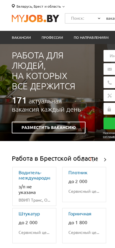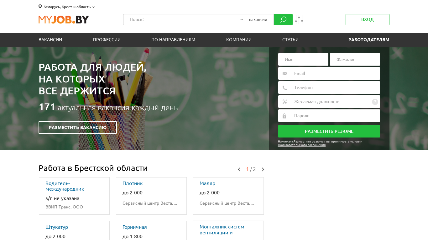 | SEO-описание | Работа вакансии резюме на myJOB.BY - поиск вакансий, поиск резюме. Работа в Бресте и других регионах. Подбор персонала. Новости, публикации, аналитика по трудоустройству |