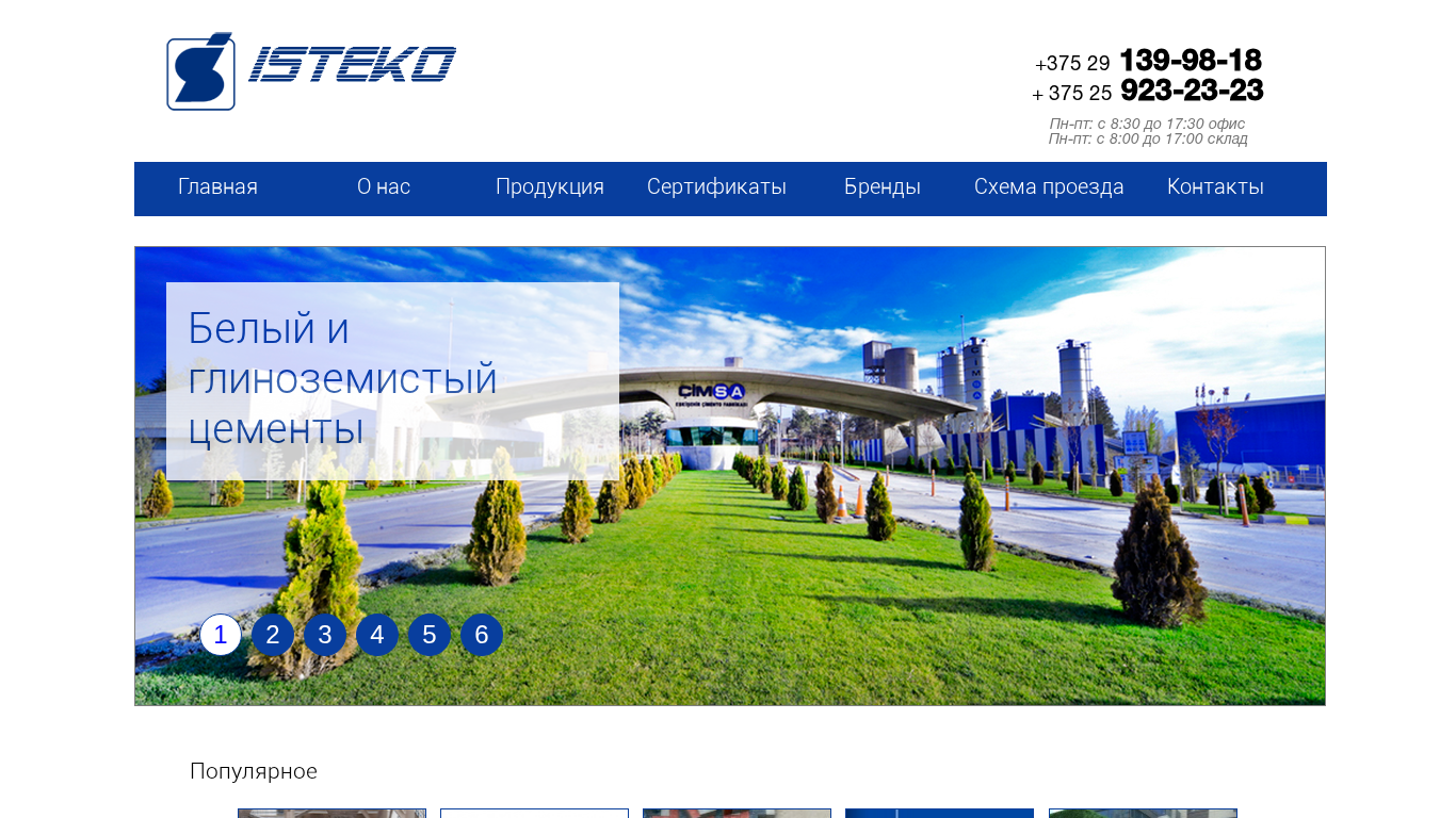 | AI-анализ | Сайт является бизнес-платформой для "Истеко", строительной компании, базирующейся в Беларуси. Главная страница содержит информацию о компании и её продуктах, включая белый цемент и глиноземистый цемент, гипс, мраморную муку, куски мрамора, корунд и кальциевую сульфатную кислоту. Сайт также предоставляет детали о местоположениях офиса и склада в Дзержинске и Калинковичах, а также контактную информацию. Предполагается, что перечисленные товары предназначены для продажи, и сайт может предложить дополнительные детали или спецификации для каждого из них. Бренды компании включают ABS, ALCI, VE, BLOK SANAYI A.S., CIMSA, CIMENTO SANAYI VE TICARET A.S., NIGTAS, и EFE Barit. Сайт принадлежит Tolk. |