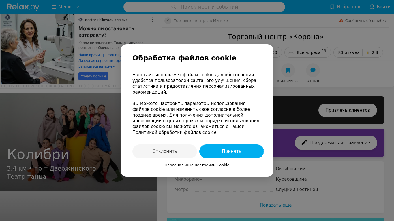 | SEO-описание | Торговый центр Корона в Минске – отзывы, телефоны, график работы и карта проезда на Relax.by |