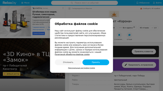 | SEO-описание | Гипермаркет Корона в Минске – отзывы, телефоны, график работы и карта проезда на Relax.by |