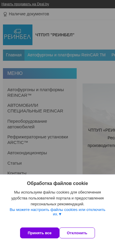 | AI-анализ | The web project "ЧТПУП "Реинбел" is a Belarusian company that offers contacts, products, and services related to its production and sale of REINCAR™ vehicles and direct import of ARCTIC™ climate equipment for commercial transport in Belarus. The website includes categories for AutoFurgoons and Platforms, Auto Condensers, Refrigerator Installations, and Auto Repair Services for furgons and refrigeration units. The catalog offers an isothermic auto-van for 8,000 rubles, as well as various services like insulation (420 rub.) and door manufacturing (450 rub.). Contact information for the production and sales department, tender office, and accounting department are provided, along with a director's contact. Products include the ARCTIC™ XS G3 refrigeration unit, priced at 7 |