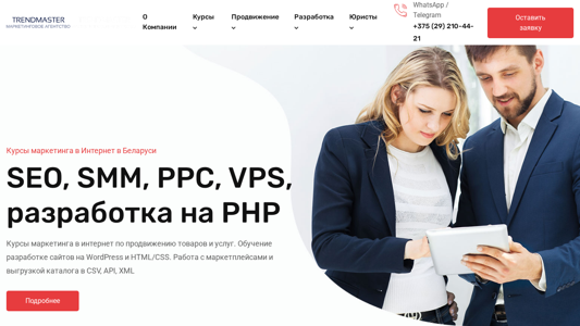 | SEO-описание | Курсы маркетинга в Интернет в Беларуси: seo продвижение сайтов, smm продвижение вконтакте и инстаграм, продвижение ютюб канала, настройка контекстной и таргетинговой рекламы в Витебске, Бресте, Гомеле, Могилёве, Гродно, Бресте и Минске |