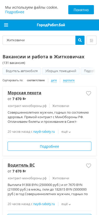 | SEO-описание | Ищете работу в Житковичах? На нашем сайте Вы найдете более 131 свежей вакансии от прямых работодателей. Быстрый и удобный поиск вакансий с ГородРабот.бай |