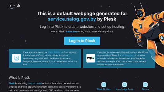 | AI-анализ | Этот онлайн-ресурс является стандартной веб-страницей, генерируемой панелью управления Plesk для домена правительства Беларуси, service.nalog.gov.by. Он приглашает пользователей войти в Plesk для создания сайтов и настройки хостинга. Для новых пользователей есть ссылка, где можно узнать, как войти и начать работать с Plesk. Кроме того, представлены рекламные предложения по Sitejet Builder, бесплатному инструменту для создания сайтов и редактирования, а также WP Guardian, инструменту управления WordPress, оба из которых интегрированы безупречным образом в панель управления Plesk. Plesk — это панель управления хостингом для управления веб-сайтами, DNS, почтой и другими услугами с графическим интерфейсом пользователя. Она разработана для того, чтобы помочь профессионалам в области веба управлять их бизнесами по хостингу и веб-приложениями как на традиционном, так и на облачном хостинге. |
