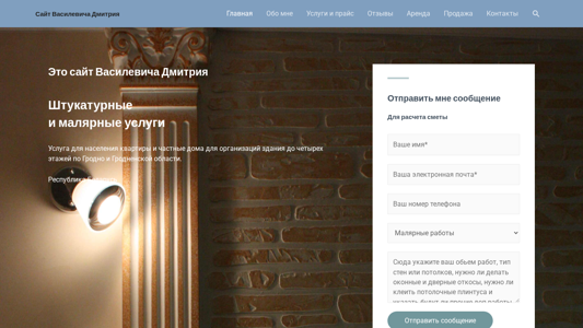 | AI-анализ | This online resource is a website belonging to Dmitry Vasilevich, offering stucco and painting services for both residential and commercial buildings up to four floors in the Grodno and Grodnen region of Belarus. The site includes information on the range of services provided, including stucco work using both cement and gypsum, and painting services such as spackling and baseboard installation. The site also offers equipment rental for stucco work and the sale of stucco equipment. The user can request a quote by filling out a form with their name, email address, and phone number, and selecting the required service. The site includes testimonials and contact information. The site is only accessible with JavaScript enabled. |