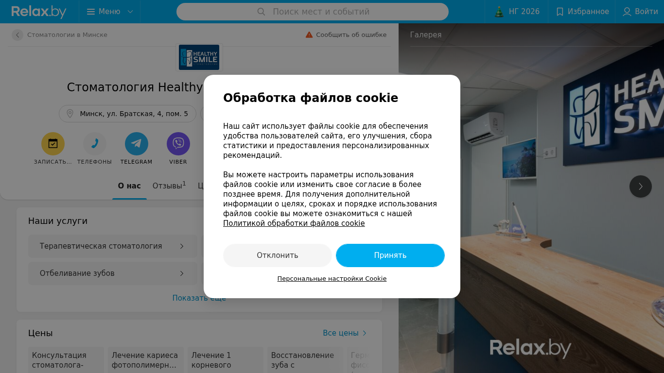 | SEO-описание | Стоматология Healthy Smile (Хелси Смайл) в Минске – отзывы, телефоны, график работы и карта проезда на Relax.by |