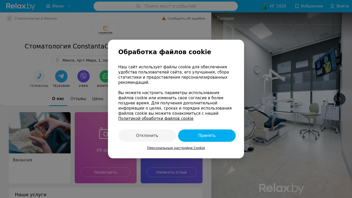 | SEO-описание | Стоматология ConstantaClinic (КонстантаКлиник) в Минске – отзывы, телефоны, график работы и карта проезда на Relax.by |