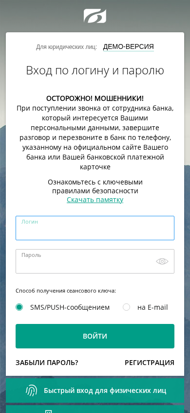 | Название / Заголовок | Вход в систему "Интернет-банкинг" |