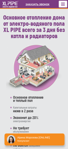 | AI-анализ | The website is dedicated to the sale of electric water floor heating systems XL PIPE in the city of Minsk, Belarus. The title of the website is "Отопление дома от электро-водяного пола XL PIPE купить в г. Минск" (Heating a home with an electric water floor heating system XL PIPE in the city of Minsk). The description includes keywords such as "pipe," "filling," "heating," "Minsk," "pool," and "price." The top words are "pipe" (46 occurrences), "filling" (32), "heating" (27), "Minsk" (22), and "pool" (17). The website provides information on the benefits of XL PIPE, including quick installation (three days without a boiler and radiators |