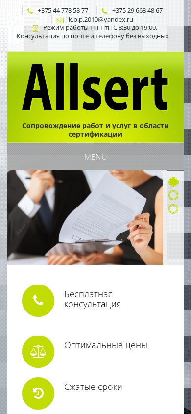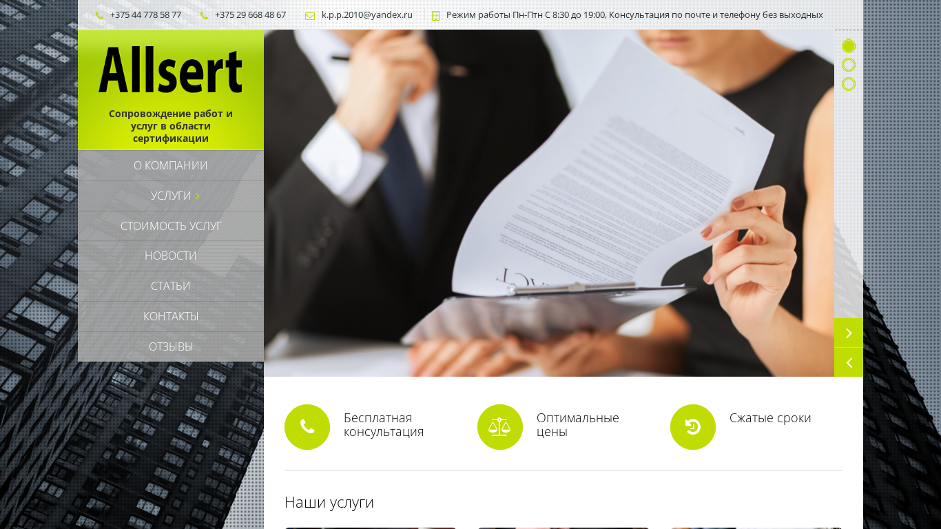 Название / ЗаголовокAllsert - центр сертификации товаров и услуг в Минске и РБ.